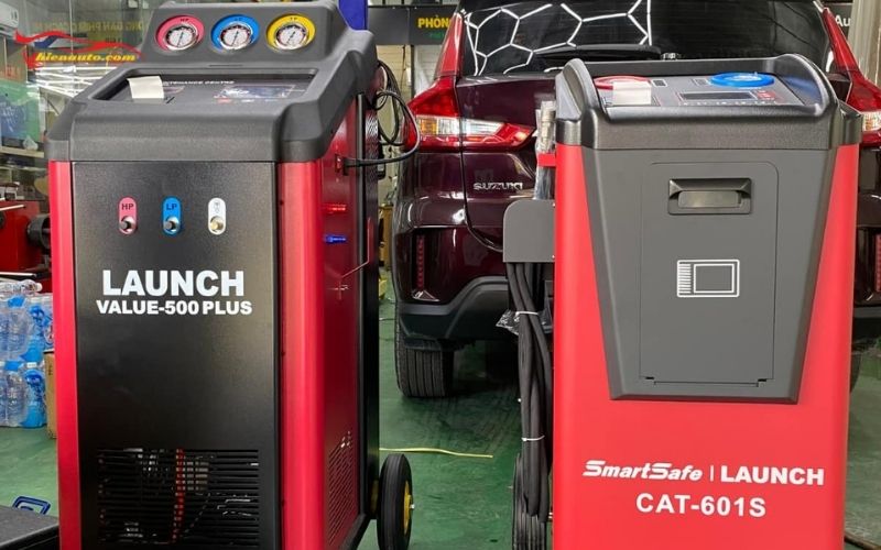 - Thiện Auto trang bị máy nạp gas tự động Launch Value 500 Plus, đảm bảo quá trình nạp gas hoàn toàn tự động, không cần can thiệp thủ công. Thiết bị này giúp tái chế chất làm lạnh, lọc tạp chất hiệu quả, và nạp lại gas chính xác theo tiêu chuẩn của từng mẫu xe.