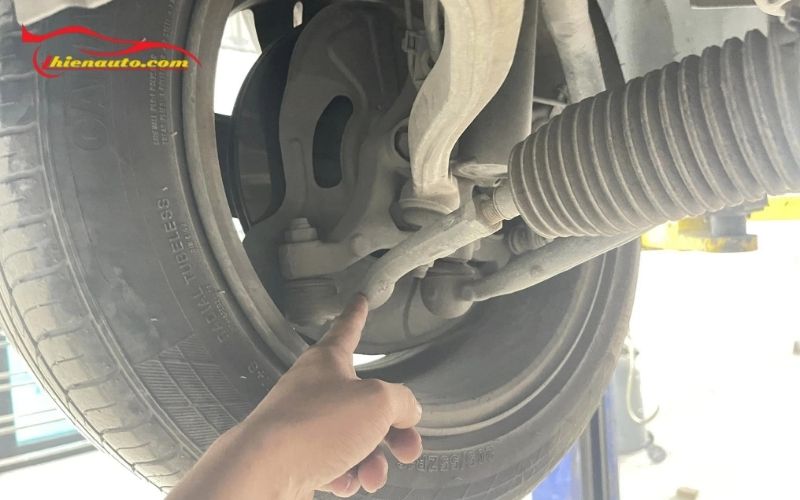 - Cách thực hiện: Khi xe đỗ trên mặt đất phẳng, quan sát dưới gầm xe, đặc biệt là khu vực của rotuyn lái.