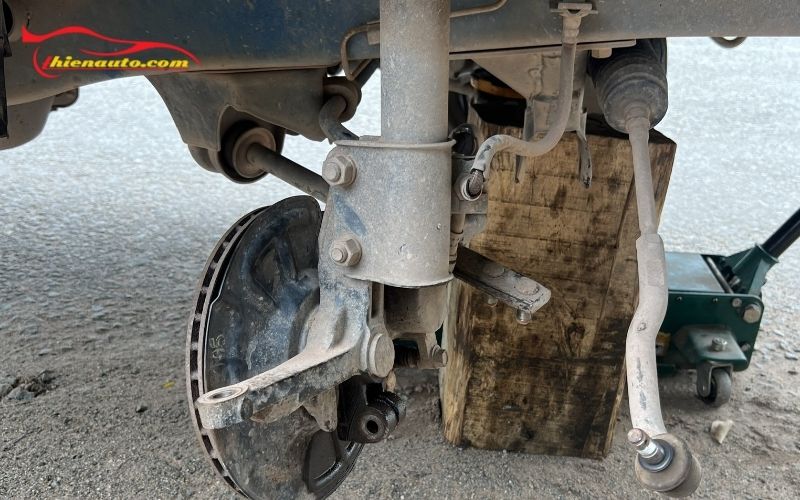 - Cách thực hiện: Sử dụng con đội thủy lực để nâng xe lên, đảm bảo rằng bánh xe không còn chịu lực từ hệ thống treo.