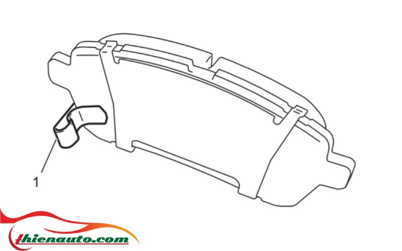 - Lắp bố phanh với dấu báo mòn (1) vào phần giữa xe dành cho bố phanh phía trước bên phải và trái.