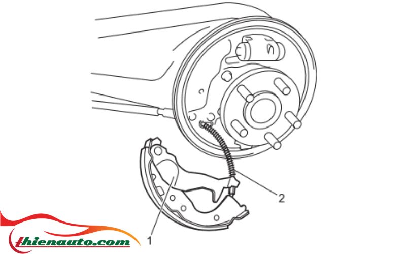 - Phân biệt lò xo má phanh trên (2) và lò xo máphanh dưới (3) bằng độ rộng bản “a” đối với lò xo trên và “b” đối với lò xo dưới