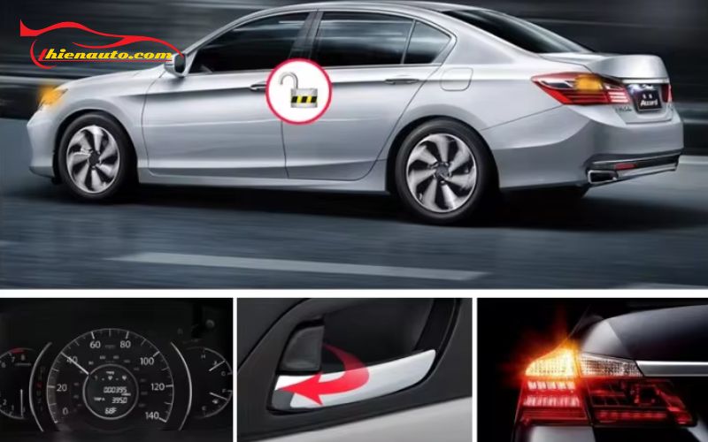 - ✔️ Đèn báo nguy hiểm sẽ nhấp nháy khi cửa được mở