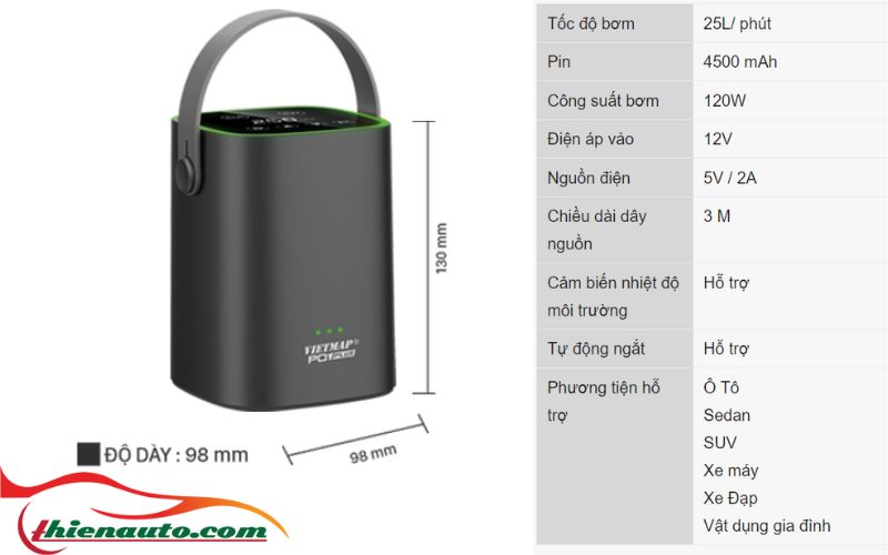 Thông số kĩ thuật của bộ Vietmap P01 Plus(Bơm lốp điện tử thông minh)