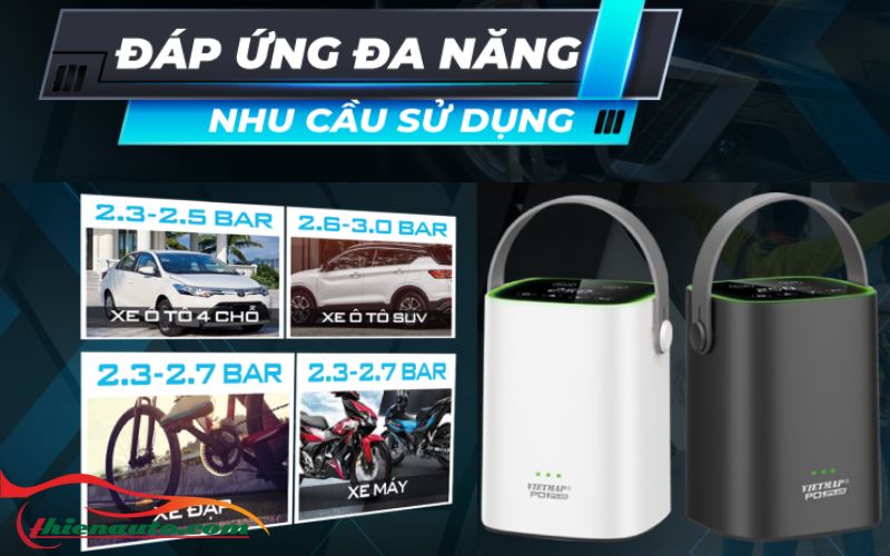 – Công nghệ thông minh: bộ Vietmap P01 Plus được trang bị công nghệ thông minh, cho phép bạn thiết lập áp suất lốp mong muốn và thiết bị sẽ tự động ngắt khi đạt được áp suất mong muốn.