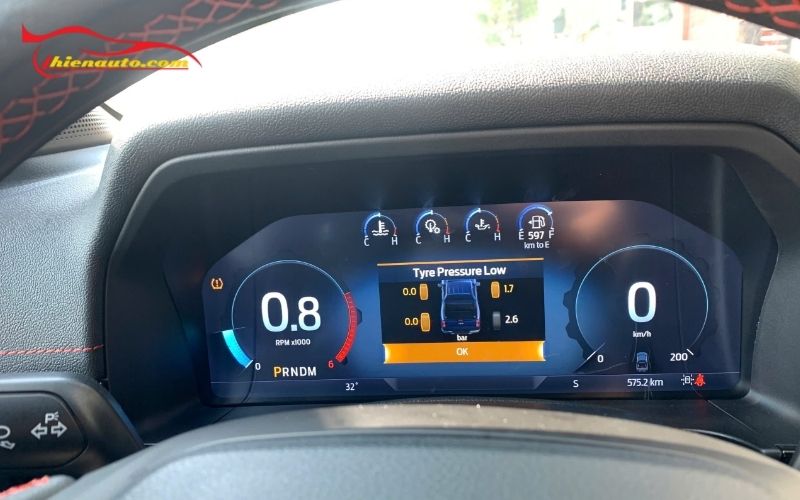 - Màn hình: Lắp cảm biến áp suất lốp Ford Ranger Wildtrak giúp hiển thị qua màn LCD màu 1 inch, chống chói, hiển thị 4 hướng, độ phân giải cao