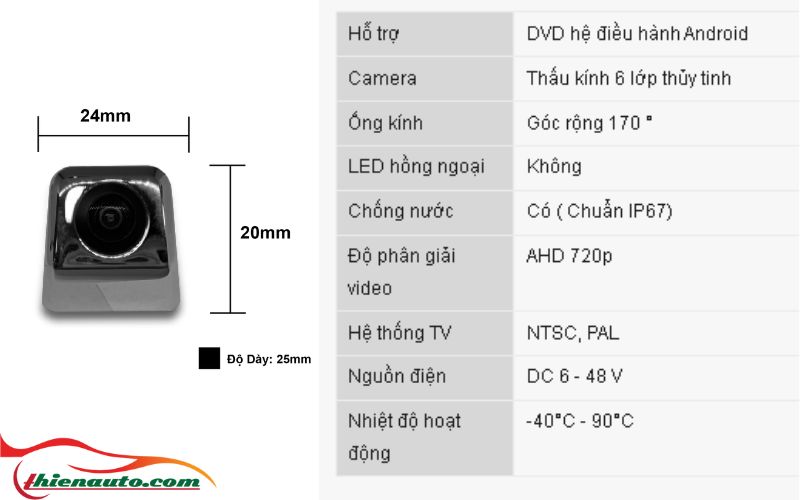 Thông số kĩ thuật của bộ Camera lùi AHD VM-AC2