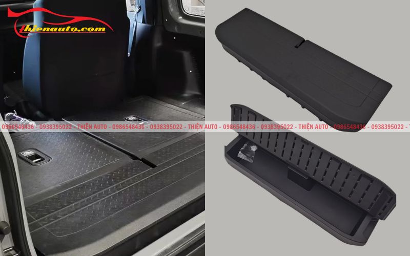 Hộp đựng đồ sau cốp Suzuki Jimny là phụ kiện được thiết kế để tăng không gian lưu trữ cho xe. Hộp đựng đồ Jimny này được lắp đặt ở phía sau cốp xe giúp chủ xe có thể dùng để chứa các vật dụng như dụng cụ sửa chữa, dụng cụ du lịch, hoặc các đồ dùng cá nhân khác mà bạn muốn giữ gọn gàng và an toàn trong quá trình di chuyển. Thông tin về phụ kiện Jimny này tại Thiện Auto như sau: