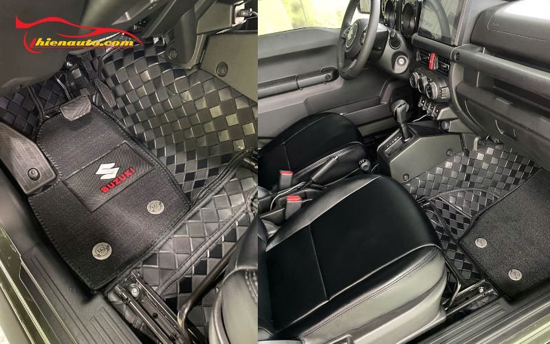 - Thảm lót sàn 360 Suzuki Jimny thường được thiết kế theo phong cách hiện đại và sang trọng, tạo nên một diện mạo thẩm mỹ cao cho nội thất xe. Đưa nội thất xe nâng cấp lịch lãm và phong cách hơn vẻ vốn có của Jimny.